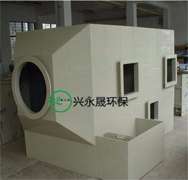 水噴淋凈化設(shè)備依據(jù)不同廢氣成分的化學(xué)性質(zhì),選擇針對性的吸收液,吸收液由循環(huán)水泵從循環(huán)水箱中吸取并送至塔內(nèi),通過噴頭均勻的噴淋到填料層中形成氣液傳質(zhì)液膜層,吸收液隨重力作用沿填料層向下流動直至塔底循環(huán)使用。由于上升氣流和下降吸收劑在填料層中不斷接觸,所以上升氣流中溶質(zhì)的濃度越來越低,在塔體最頂部設(shè)置有波紋板,當(dāng)含有較多水霧的氣體進入除霧層中,分子較大的水霧撞擊波紋板后形成水滴,從而達到除霧效果。潔凈的氣體最終通過排氣筒達標(biāo)排放。